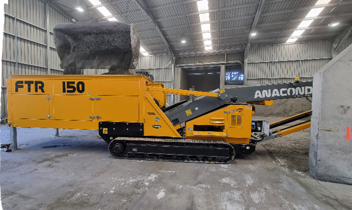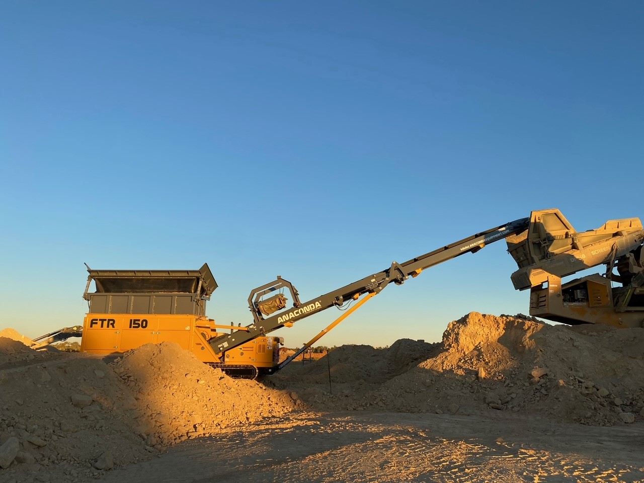 - FTR150: A versatile, mid-range model with optional scalping grids and augers. Its 15 m (49′) conveyor and adaptable configuration make it widely used across North America and Australia.