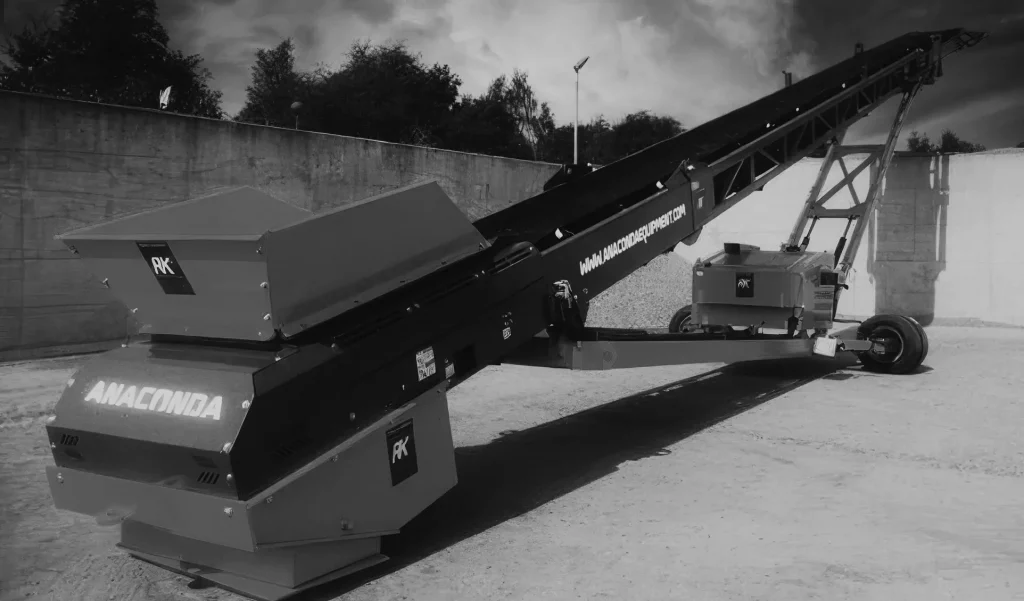 The Anaconda ST Wheeled Conveyor range features a variable speed belt drive for ultimate control of material flow and feed rates suitable for light to heavy-duty applications. Additionally, once at site equipment can be setup and operational within 10 minutes of delivery due to hydraulic folding systems for quick between transport and working positions.